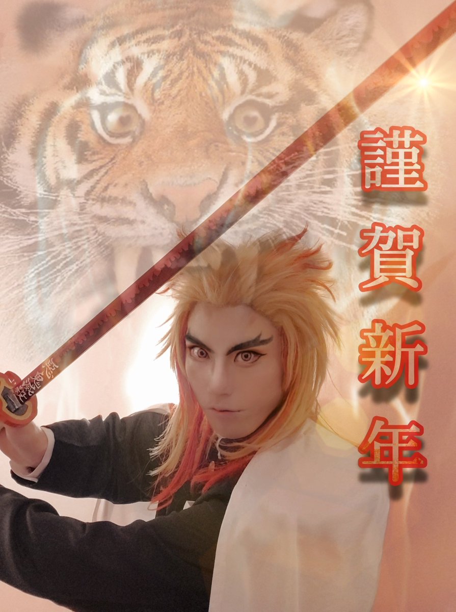 cos : 鬼滅の刃 / 煉獄杏寿郎 🔥炎の呼吸 伍ノ型 炎虎🔥 🐯~ 2022・元旦 ~🎍 明けましておめでとうございます! 虎の如く勇ましく✊🔥 今年も、よろしくお願いいたします! #煉獄杏寿郎コスプレ #cosplay