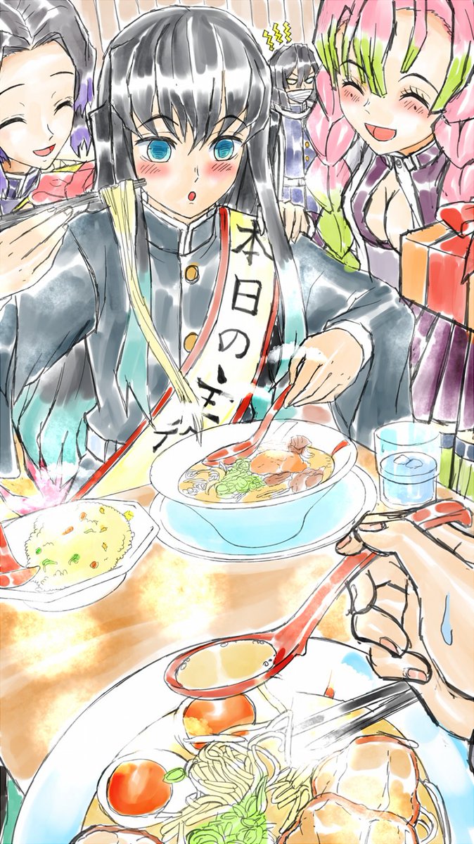 今日のお絵描き 完成 #時透無一郎 の #誕生日 キャラ多いんで時間がかかった😵💨💨 #時透無一郎生誕祭2023 #甘露寺蜜璃 #胡蝶しのぶ #煉󠄁獄杏寿郎 #竈門炭治郎 #伊黒小芭内 #イラスト #絵描きさんと繋がりたい #鬼滅の刃 #8月8日は時透無一郎の誕生日 #ラーメン