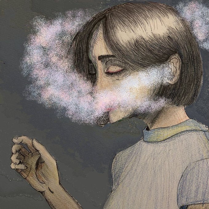なんが忌々しいもの描きましたな私 w 最近部屋探しの件でめっちゃ落ち込んでる、落書きの時間も減ちゃった🥺 #鴉 #鳥 #絵描き #落書き #絵描きさんと繋がりたい #イラスト #デジ絵 #煙 #procreate #crow #raven #illustration