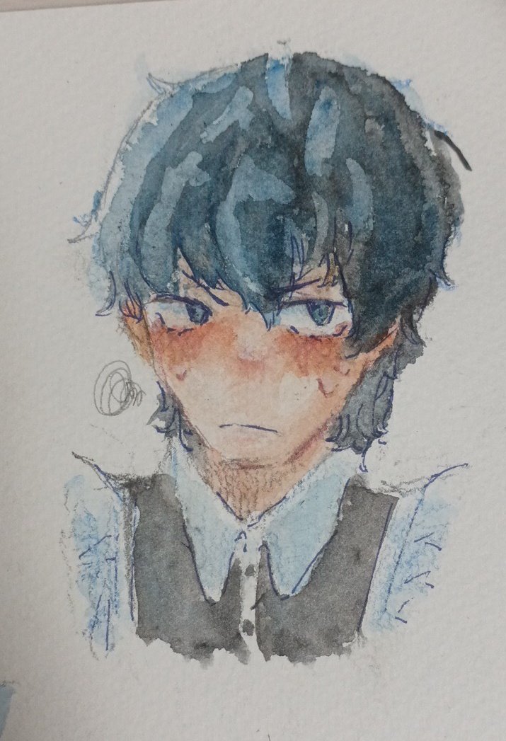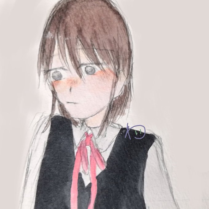 「好きな人がメイド好きなのを知って、着てみたところを見られた」っていう設定 #創作イラスト #絵描きさんと繋がりたい #イラスト好きな人と繋がりたい #水彩 #女装男子 #照れ顔 #メイド服