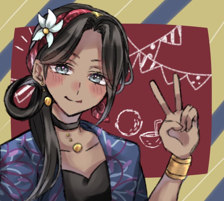「花火」 アリアーブ•ナーリヤ復刻嬉しいので再掲! 先輩、シャドウとネイルが大優勝なのに、Rで貰えるの意味わからん… #ツイステファンアート #熱砂の国のアリアーブ・ナーリヤ #トレイ・クローバー