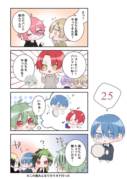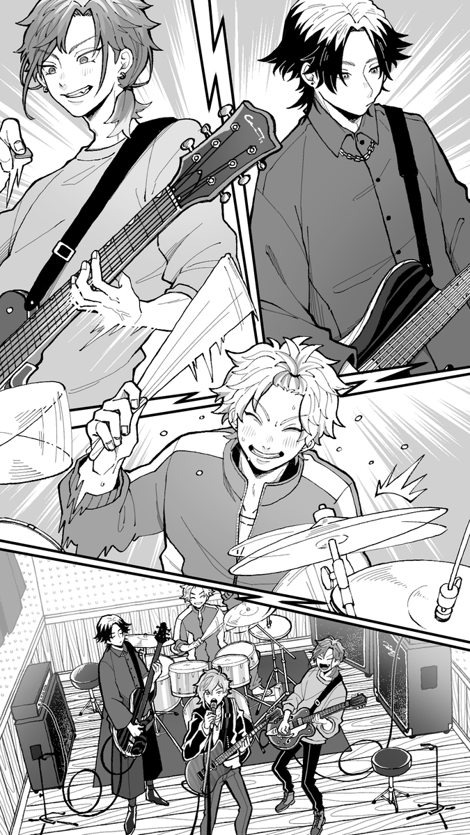 4人組バンド「燦然世界」のメンバーのほとんどは常に金欠状態なんだ!(豆知識) マンガ:萩原あろ( @Aro_Hagiwara ) #HOWLing4コマ #漫画が読めるハッシュタグ #音楽で恩返し #燦然世界