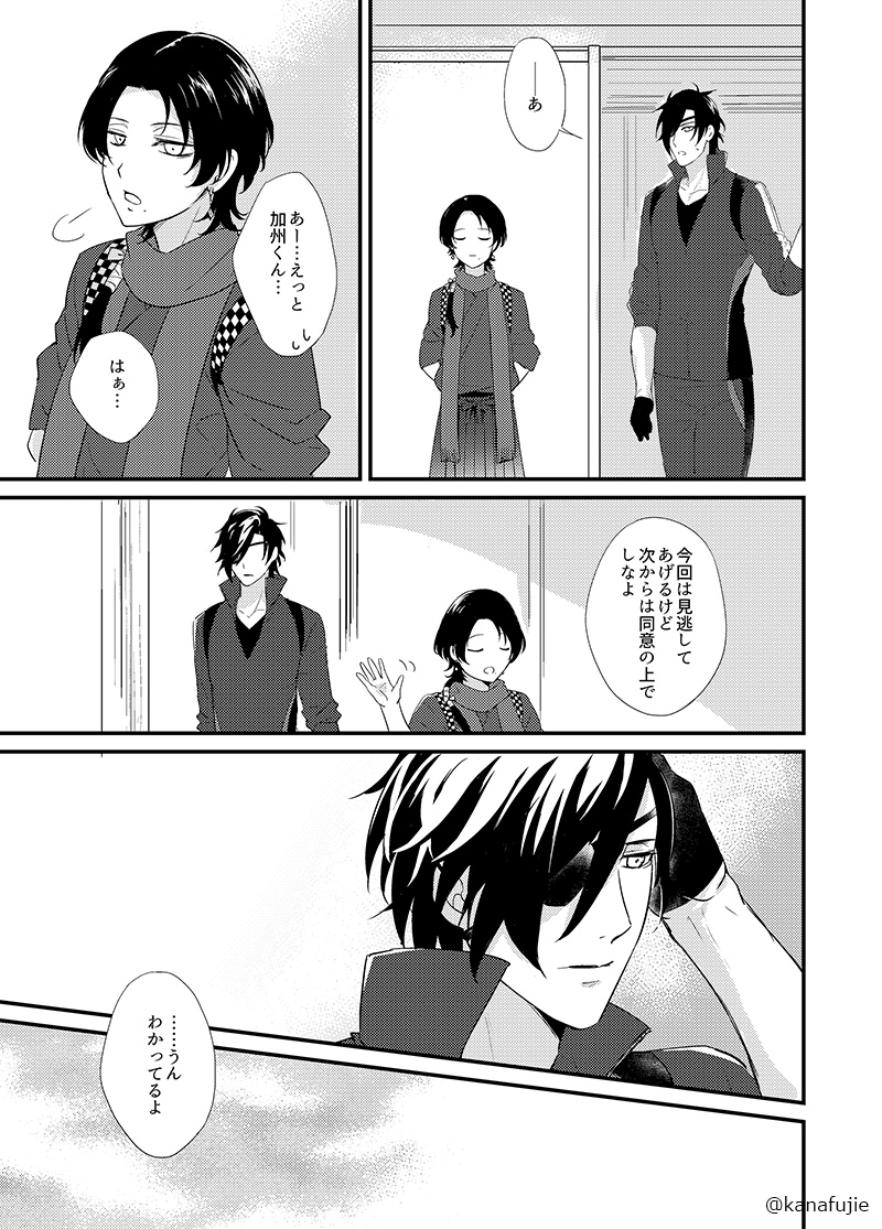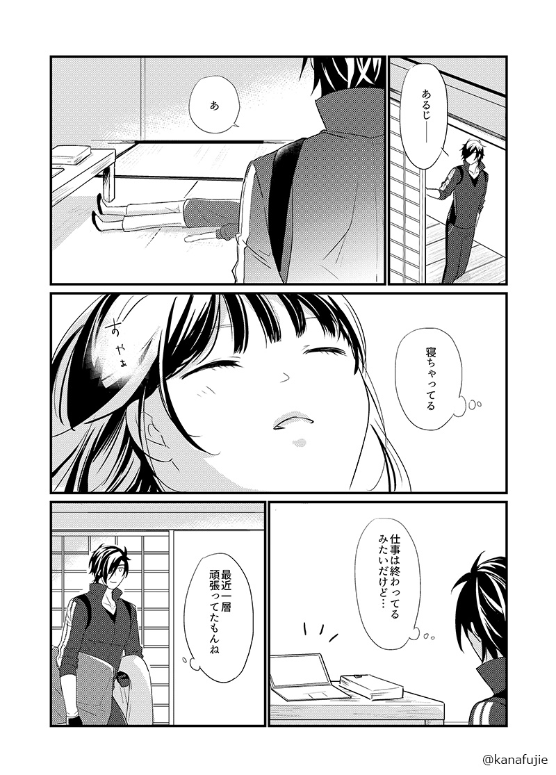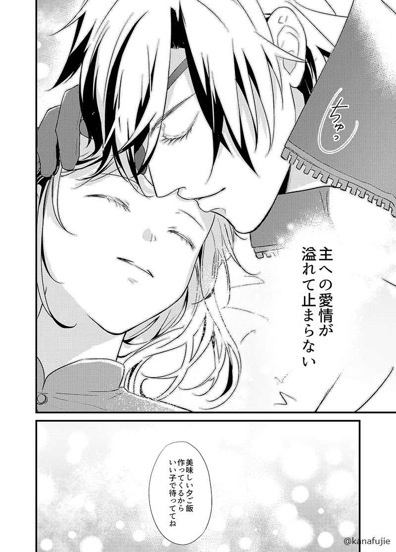 本の続き(冒頭)です! この4ページもですが、泣く泣くプロットで切った甘々エピソードは次回📖にして描きます…!!😭 気になった方は是非お手に取ってみてください!!↓↓↓ #燭さに祭2022 twitter.com/kanafujie/stat…