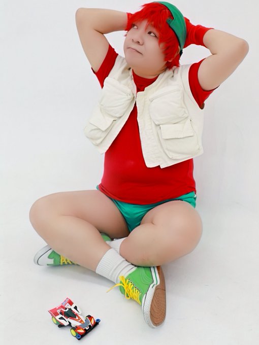 【 #Cosplay / #星馬烈 】 #みどりの日なので緑色の画像を貼る #連休だから太ももでもおいてけ #レツゴー #星馬烈 くんの私服は、帽子、半ズボン、シューズが緑色なんですよね😄 で、私服の烈兄貴となると、短い半ズボンの男の子なので太股も出しまくっているので😄🎵 #爆走兄弟 #ミニ四駆