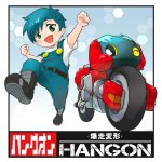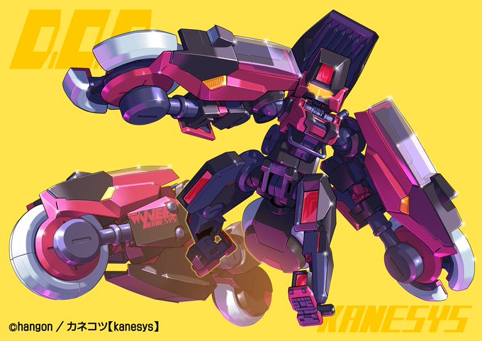 【お仕事】 「爆走変形ハングオン」の新型マシン「D.O.D.」のデザインおよびイメージイラストを作成させていただきました! バイク←→ロボの変形は上半身の仰け反りを基幹としシンプルに、ロボ時はハングオンとの対比で怪獣的シルエットにしています #爆走変形ハングオン twitter.com/hangon0001/sta…