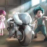 【ハングオンとの出会い】 ある日、エイジとリンは納屋の中で 布を被った何かを見つけました。 布の下から現れたのは真っ白なバイク。 光に照らされたそれは、 眠っているようにも見えました。 #爆走変形ハングオン #イラスト