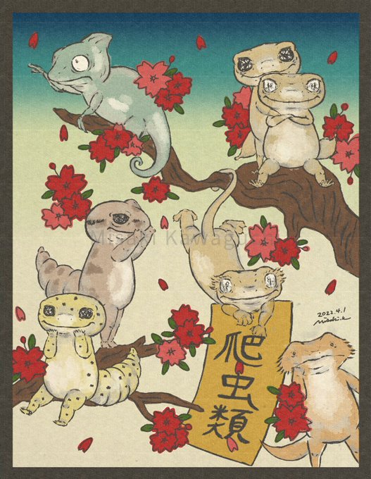 第2回 #お題制作 【春】 🌸 花札っぽくしてみました😊✨ ぎりぎりすぎてまだ作れてないのですが、後日グッズ化やプレゼント企画など何かしらやりたいと思ってます👌 #爬虫類好きさんと繋がりたい #爬虫類好きな人と繋がりたい