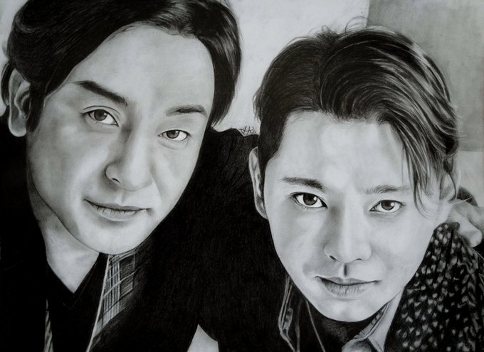 #今年描いた絵を晒そう 今年のツーショットまとめ祭り🤗🤗🏮🍧🎆🎇 2021年翼くんがお世話になった人達に感謝を込めて🍀*゜ (多分タッキーもネ😊👍) #今井翼 #滝沢秀明 #片岡愛之助 #佐藤浩希 #片岡千次郎 #鉛筆画 #絵描きさんと繋がりたい