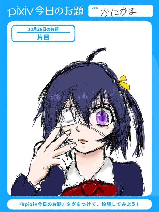 #応援ボイス #Sketchドロー #片目 #pixiv今日のお題 #sensei #小鳥遊六花 片目のお題で鬼太郎か小鳥遊六花しか思い浮かばなかった sketch.pixiv.net/items/22509814…