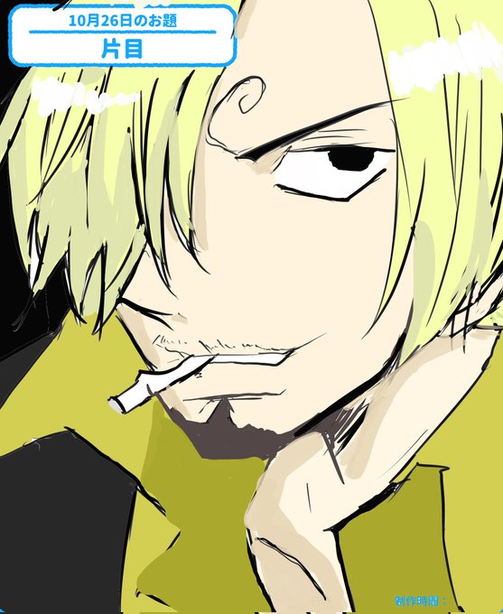 #イラスト #イラスト好きな人と繋がりたい #お絵描き #お絵描き好きさんと繋がりたい #ONEPIECE #サンジ #ヴィンスモーク・サンジ #みんなで楽しむTwitter展覧会 #片目 「もうそれ以上 言葉はいらねエハズだぜ。」