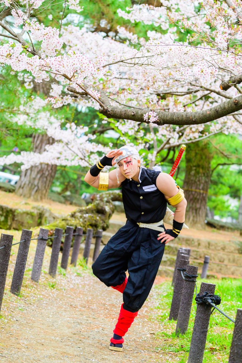 コスプレ//鬼滅の刃//宇髄💎🌸 桜がとても綺麗でした❤️🌸 📸&🖋→@haneiro_ff #なんて素敵な和歌山なんでしょう #0403桜鬼滅コス和歌山城 #牛コス牛 ありがとうございました❤️