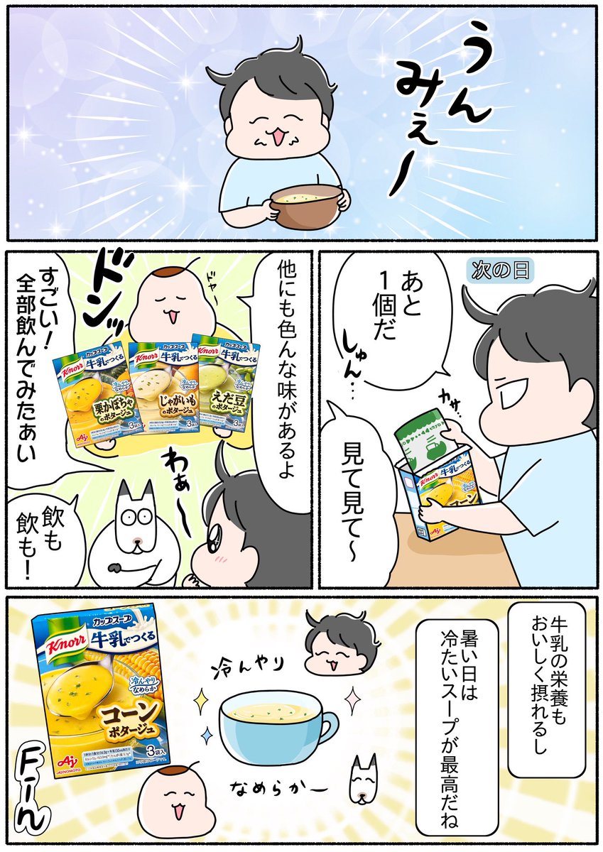これからの季節にぴったり! 牛乳大好きな息子と一緒に、冷たいスープをちゅくってみた👶🐮🥛✨ #牛乳でつくるカップスープ #クノール #味の素 #PR ajinomoto.co.jp/knorr/tsumegyu…