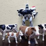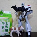 特車二課もいつもこういうお仕事をしていると微笑ましくていいですよね!縮尺が合わなくて親牛を持ち上げることはできなかったけど子牛がぴったりサイズ🐄 最近のプラモデルってこんなに関節やらギミックが動くんだ👀❗ #パトレイバー模型部 #牛乳でスマイルプロジェクト