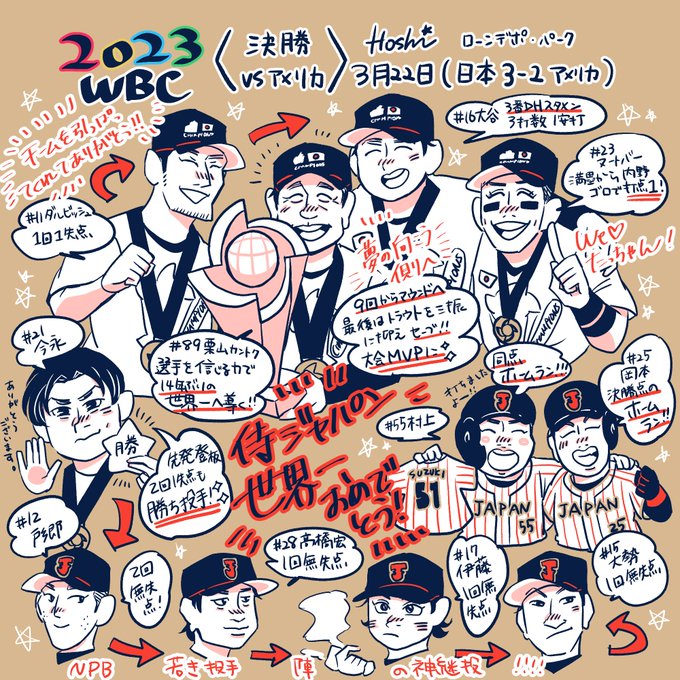 改めまして侍ジャパン世界一おめでとうございます🎊 夢のような楽しい時間をありがとうございました!しかも、決勝の勝ち投手が今永先生だなんて🥹 そして今大会で牧選手のファンが増えてれば嬉しいな〜というおまけつきです✍ #侍ジャパン #今日の試合 #WorldBaseballClassic #牧が好きだと叫びたい twitter.com/yokohama_hoshi…