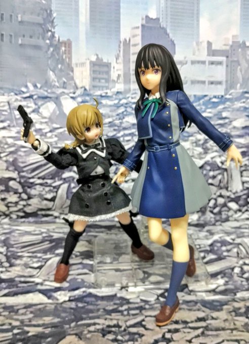 千束はどこに??… (バシュ) あっ⁉ あなたにはこれを!!(ギュ) ピュ〰〰〰… な、なにこれ??重い💦 #アサルトリリィドール部 #リコリスリコイル #井ノ上たきな #特になんでもない六角汐里さん