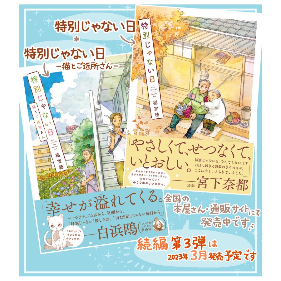 「#特別じゃない日」続刊の「特別じゃない日 猫とご近所さん」が7月21日(木)に発売となりました! 帯の推薦コメントは「#とんがり帽子のアトリエ」の白浜鴎先生(@shirahamakamome)にご執筆いただいております…! 大尊敬している白浜先生の推薦文、本当に嬉しいです。有難うございます…!