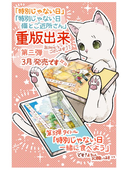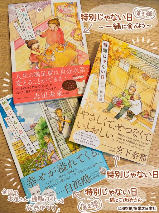 「特別じゃない日 猫とご近所さん」本日発売となりました!🐈 今回も全国の本屋さんに応援いただき特典もございます。どうぞよろしくお願いいたします…! 【実業之日本社様販売ページ】bit.ly/3Pr1AIW 【Amazon】amzn.to/3yTulXk 【楽天】bit.ly/3obpc86 #特別じゃない日