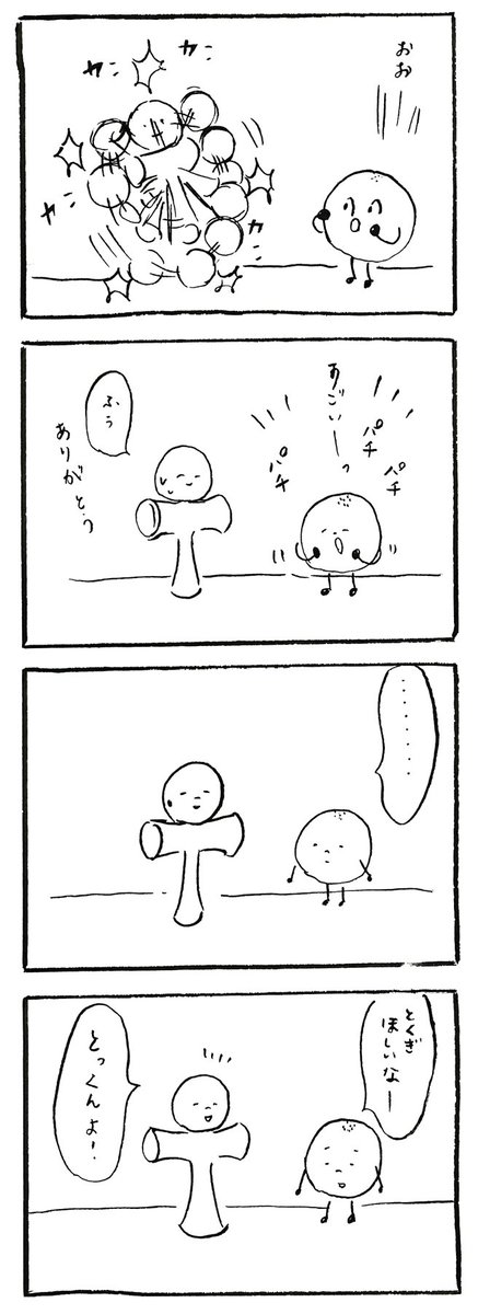 『ぼーちゃんの意外な特技🍙🍙🍙』 ぼーちゃんにはいろいろ特技があるのですが、これも…… #特技 #おむすび #ジャグリング #だるまのぼーちゃん #イラスト #ゆるいイラスト #ゆるかわイラスト #お絵かき #絵描きさんと繋がりたい #一日一絵 #4コマ漫画 #漫画 #漫画が読めるハッシュタグ