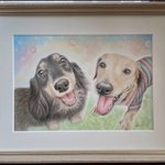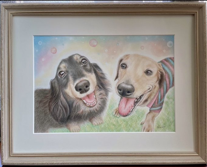 #色鉛筆画 #犬の似顔絵オーダー #ミニチュアダックスフンド #絵好きさんと繋がりたい #イラスト好きさんと繋がりたい #絵柄が好みって方からフォローして欲しい ミュウちゃんローズちゃんの似顔絵オーダーです。 Twitterからのご依頼ありがとうございました🙏