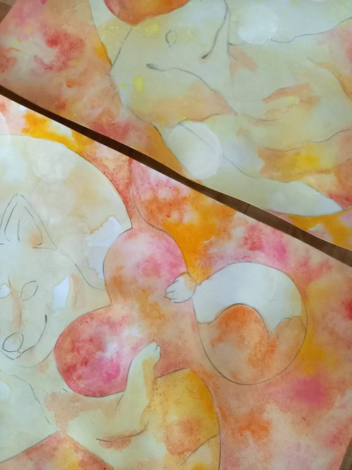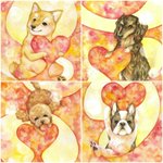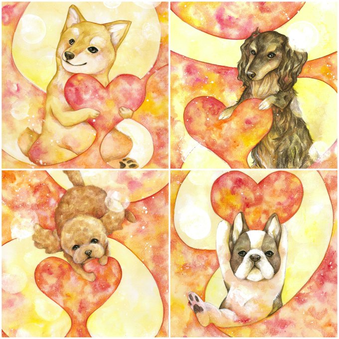 8匹同時進行していた #犬アート 完成しました。A4画用紙で水彩、アクリル、色鉛筆使用。#原画 と複製 #ポストカード の販売準備中です・ω・ #犬 #アート #art #イラスト #ハート #大切な人に贈るアート #柴犬 #ミニチュアダックスフンド #トイプードル #フレンチブルドッグ