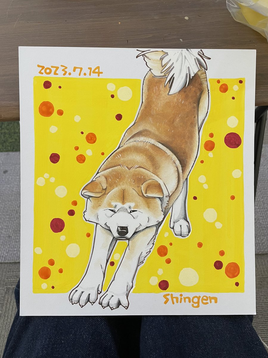 タンポポの咲く広い野原をリード無しで自由に駆け回るわんこ(ただし私有地で周囲には絶対に外に出てしまうことのない柵がある)🐶ワン🎶 #犬好き #illustration #オリジナルイラスト