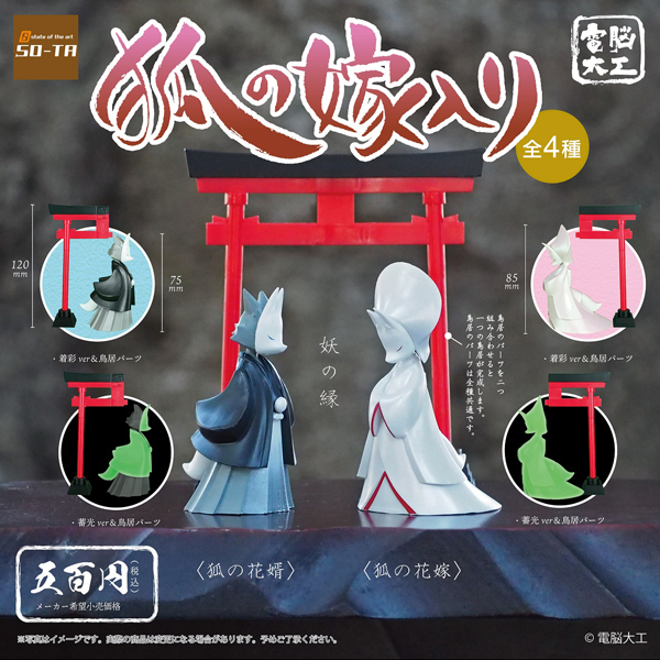 SO-TAさんより展開する #カプセルトイ 「狐の嫁入り」 早いところではもう出ているようですね。 twitterで見つけた店舗は以下のページにまとめますので参考にしてみてください。皆様の発見情報もお待ちしています。 modelinglab.hamazo.tv #狐の嫁入り