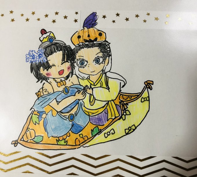 #鬼滅の刃イラスト #鬼滅の刃絵描きさんと繋がりたい #狛治,#素山恋雪,#鬼滅の刃 #鬼滅の刃好きな人と繋がりたい 🎃鬼滅の刃 ハロウィン編🎃 狛治と恋雪のハロウィン仮装イラスト👻 《アラビアンナイトの衣装》