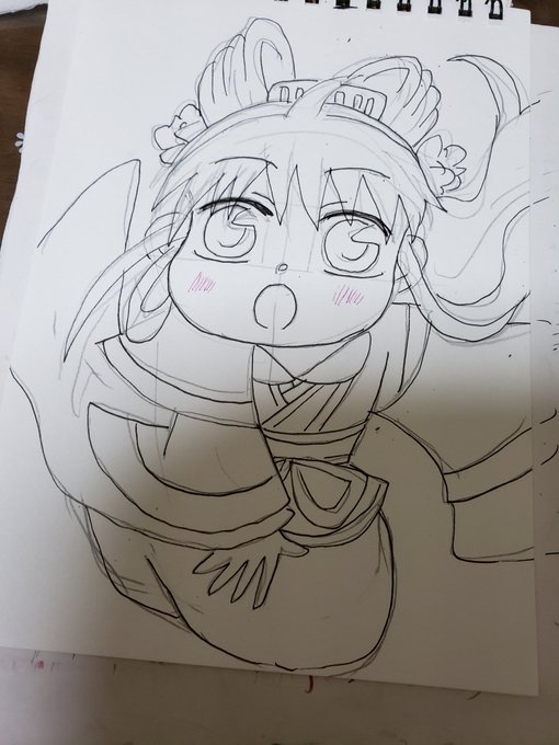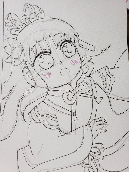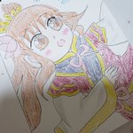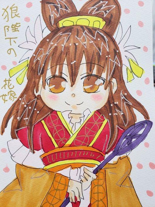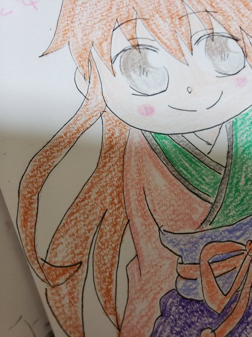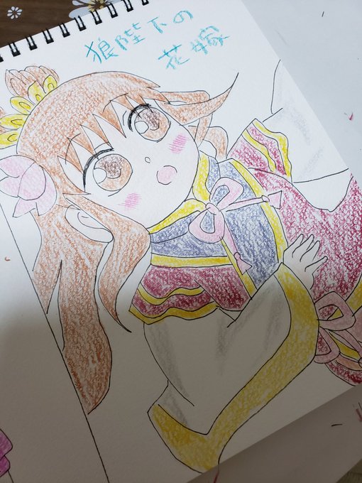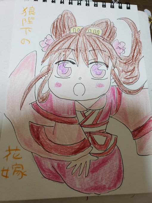 #絵描きさんと繋がりたい #イラスト #デフォルメ #狼陛下の花嫁 #色鉛筆 #絵柄が好みって人がいたらいいなぁ 入院中、ホールが怖くてナースステーションに入り浸ってお絵かきしてたときに、通りがかった職員さんに『狼陛下の花嫁描いてるー!ほしい!』って言われたのであげました! 当時は模写でした
