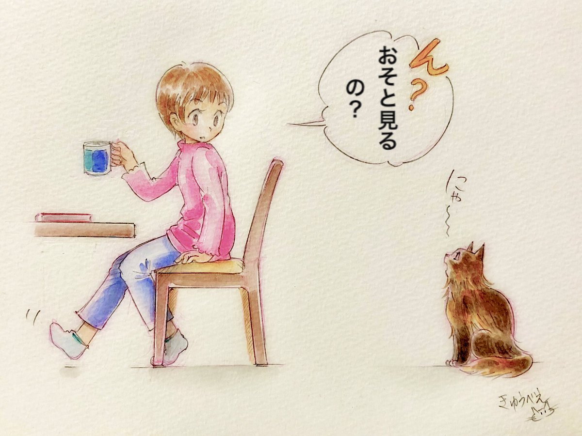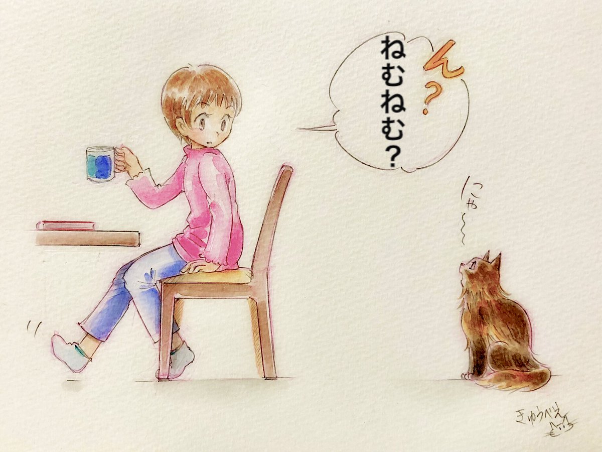 ネコ町ナーゴの猫だより シャナは御主人様が大好き。 出勤を見送る時も、帰宅した彼を迎える時も、奥さんより先に走って行き「ミャ〜オ ミャ〜オ(好き!好き!)」と鳴くのです😊 #ネコ #猫 #猫イラスト #猫あるある #cat #catstagram #cats #catsagram #catillustration