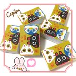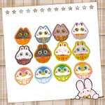 猫さん&うさぎさん&ペンギンさん! キラキラおめめのフレークシール(´。✪ω✪。 ` ) 和風な感じで制作中✨ 『猫まぁまぁうさぎとペンギン展』 #猫うさぎペンギン展 10/16-31 in大阪*中崎町(@hakomittsu.)様 #イラスト #シール