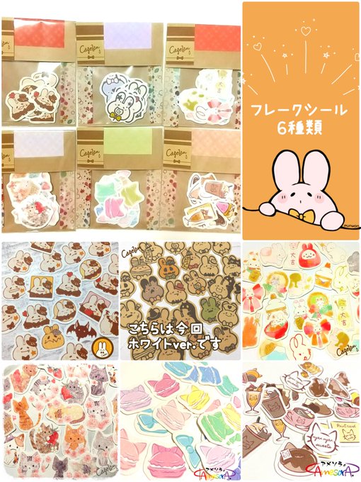 キラキラおめめ(´。✪ω✪。`)✧*。 賑やかなフレークシール!!! 素敵なグッズがたくさん集まった 『猫まぁまぁうさぎとペンギン展』 参加中!!! #猫うさぎペンギン展 10/15-31 in大阪*中崎町(@hakomittsu.)様 #イラスト twitter.com/hakomittsu/s…
