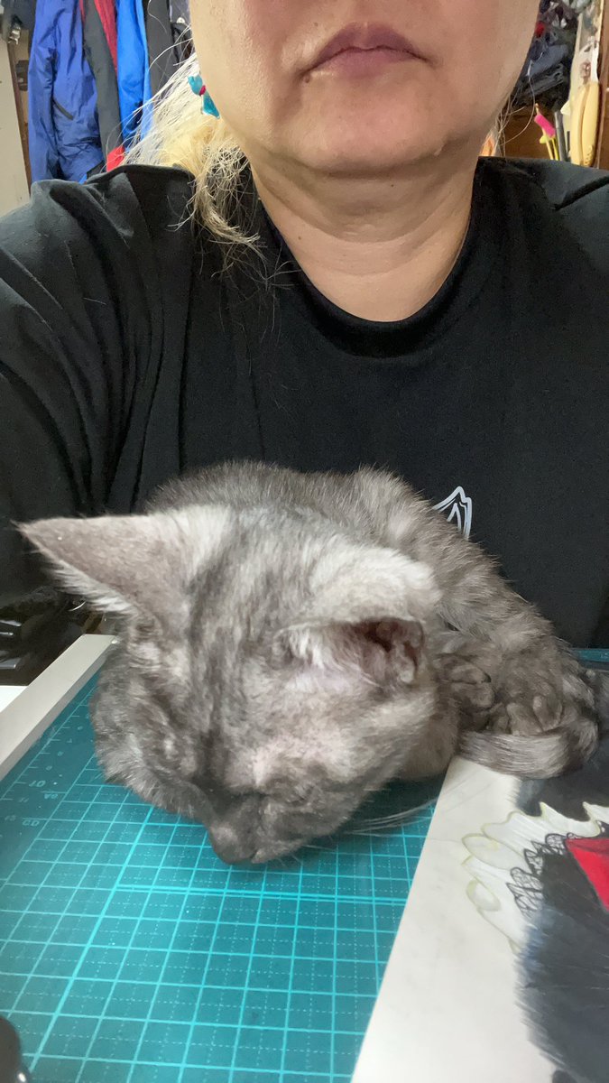 絵を描いてると邪魔しに来るミニラ😻🐾🐾 あわや紙がかじられそうになったのでダメッって言ったら大人しくなりました👍🏻😄 #猫がいる暮らし #色鉛筆画 #保護猫 #cat #catlovers #CatsOfTwitter