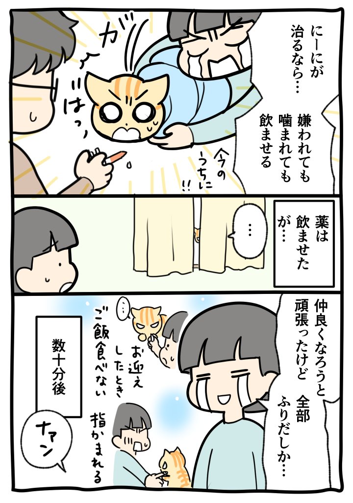オタクの夫とだめ嫁と猫達のエッセイ漫画です。 『猫に薬を無理やり飲ませた結果』 ikunomoto.com/archives/18565… 信頼とは・・・_:(´ཀ`」 ∠): #漫画が読めるハッシュタグ #漫画 #漫画好きな人と繋がりたい #マンガ #エッセイ漫画 #猫 #猫がいる生活 #猫好きさんと繋がりたい