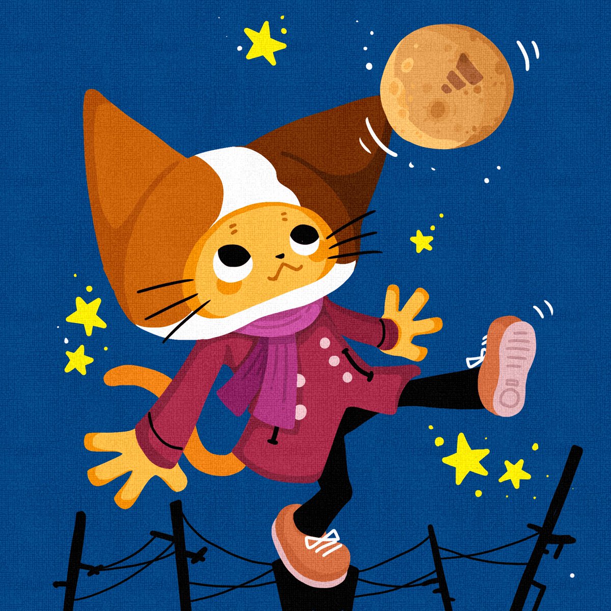 昨夜は中学からの友達とサッカー観戦。JFL時代からよく一緒に観に行った。チームもスタジアムも変わったけど、腐れ縁は変わらない。監督気取りの2人。 #ネコキャット #猫と仕事とサッカーと #京都サンガ #イラスト #illustration