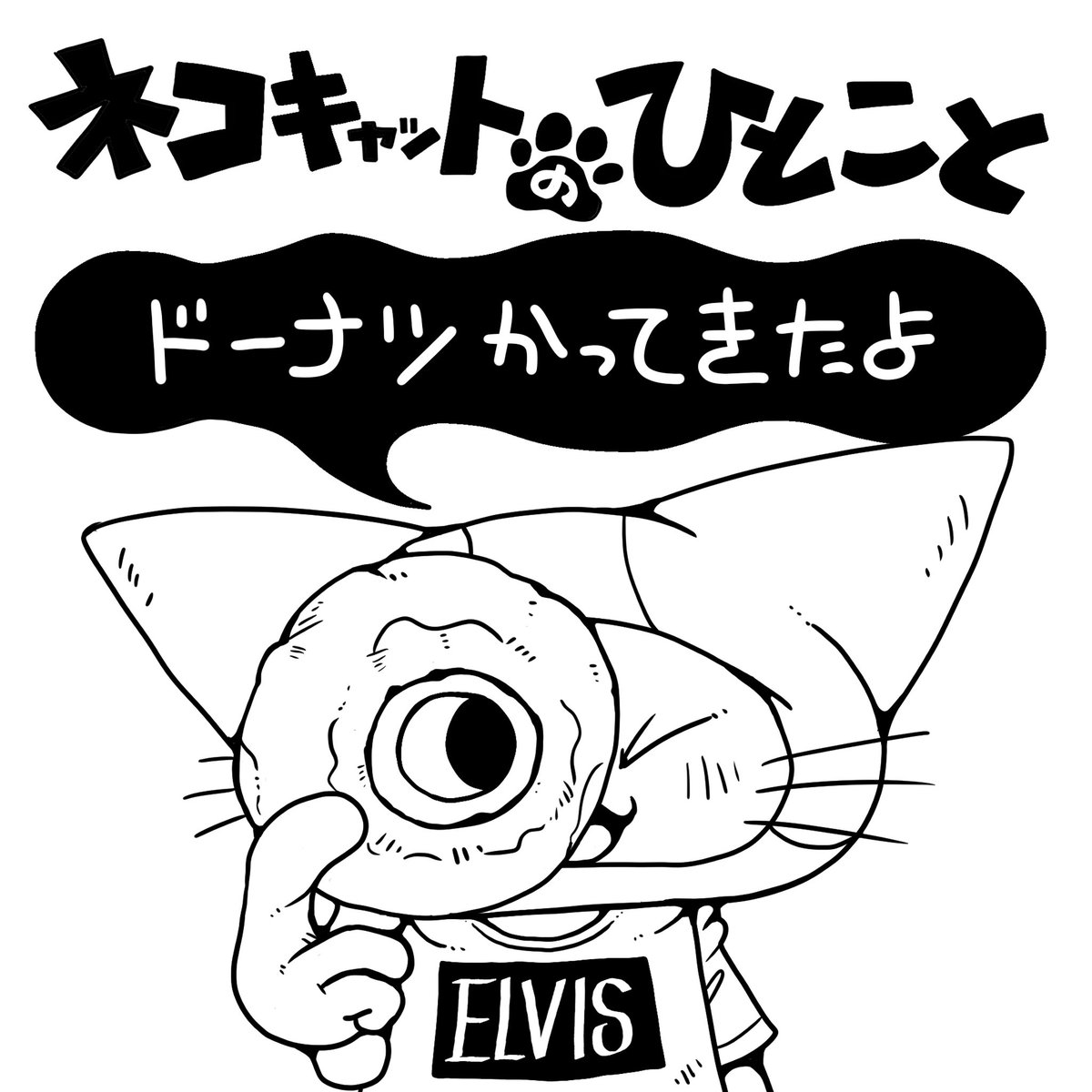 仕事帰りの奥さんがドーナツを買ってきてくれた。お土産でいただくドーナツは一番美味しいドーナツだ。 #ネコキャット #猫と仕事と水曜日と #ドーナツ #フリーランス #グラフィックデザイン #イラスト #illustration