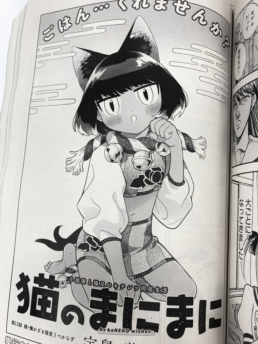 🗻ハルタ90号発売中🗻 #猫のまにまに 5話では食べすぎもちもちの金子さんが労働させられる。猫耳女が中華屋で働いてると嬉しいあなたへ。 各書店でよろしくね。電子もあるよ。 kadokawa.co.jp/product/322101…