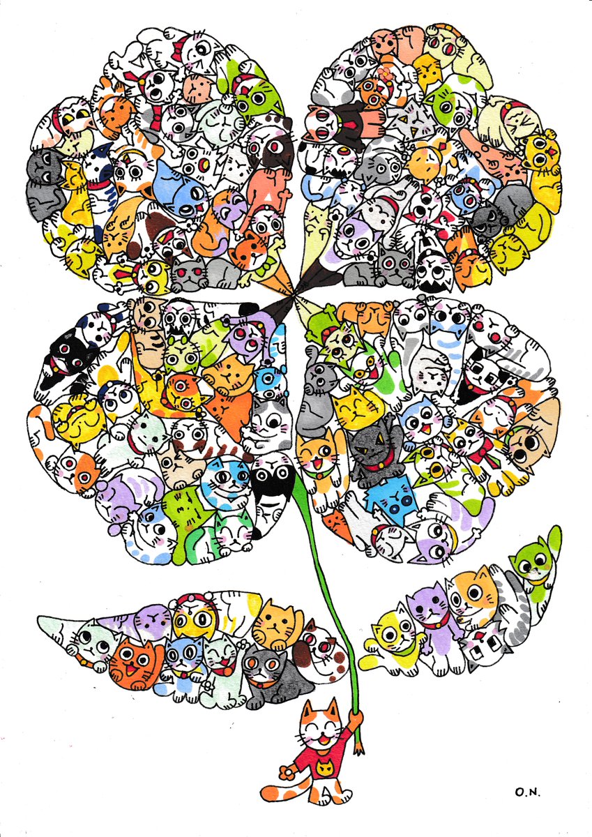 年末年始に気が狂いそうになりながら描いた「猫のパズル(猫大集合)」です。多くの方々に観てもらいたいさくひんです。 #絵描きさんと繋がりたい #イラスト好きさんと繋がりたい #アナログイラスト #アルコールマーカー #猫のパズル