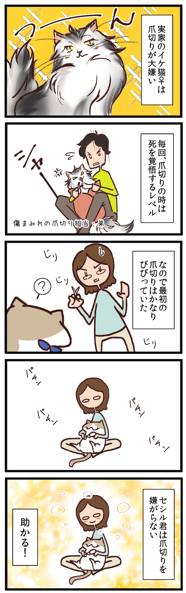 お猫と爪切り問題?! 〜前編〜 他の猫あるあるマンガはこちら→bokuneko-cat.blog.jp/archives/cat_2… #コミックエッセイ #漫画が読めるハッシュタグ #猫好き #猫好きさんと繋がりたい #ブリティッシュショートヘア #猫のいる幸せ #猫漫画 #猫との暮らし #猫の爪切り