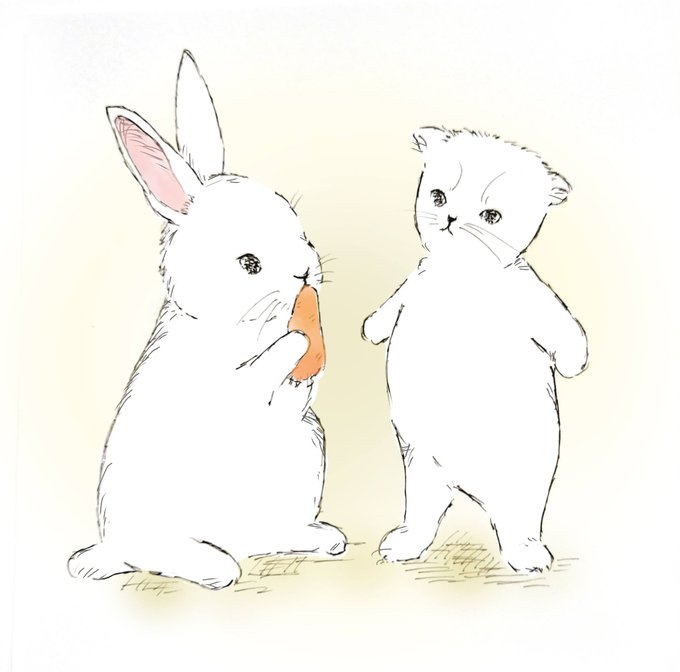 猫とうさぎ🐰 「こんにちは、ニャ🐱」(うさぎは絶賛練習中です😅) #猫イラスト #イラスト #猫をTLに流しちゃおう #猫好きさんと繫がりたい #イラスト好きさんと繋がりたい #みんなで楽しむTwitter展覧会 #ねこ #illustration
