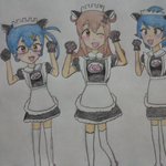 ダイクロイックアイ👀 瞳の中に2色の色素がある瞳 クロミィ@ponzoo0568 さんとのお話で、描いてみようという事になり… 猫メイドさん(何故ソコ)🤣 独身時代、アパートに居ついたモノトーンでハチワレの女の子😺を 擬人化(メイド化)して描きました。 #イラスト #ダイクロイックアイ #猫メイド