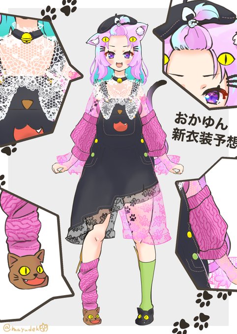 おかゆん新衣装予想イラストを デフォルメ絵描き屋が本気を出して描いたら..... ミスだらけだったので😧 修正版です🙇♂️w 本日20時からの新衣装発表 みんなで楽しみましょう!!😚💕 #猫又おかゆ新衣装予想2023 #絵かゆ