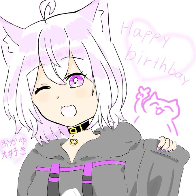 おかゆちゃん、お誕生日おめでとうございます!🎂㊗️ 楽しい配信、いつもありがとうございます。 応援しております! #絵かゆ #できたてころね #絵フブキ #みおーん絵 #プロテインザスバル #猫又おかゆ生誕祭2022 #猫又おかゆ生誕祭
