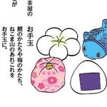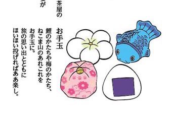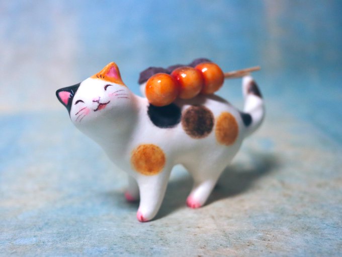 #猫国ねこま山紀行 ねこま山みやげ『えんむすび』を運ぶネコさん🐈🍙 むすび茶屋のお手伝いネコさんは「そっちは落っこちなくていいねぇ」と見ています😄 #ギャラリー猫町 twitter.com/momonekodou/st…