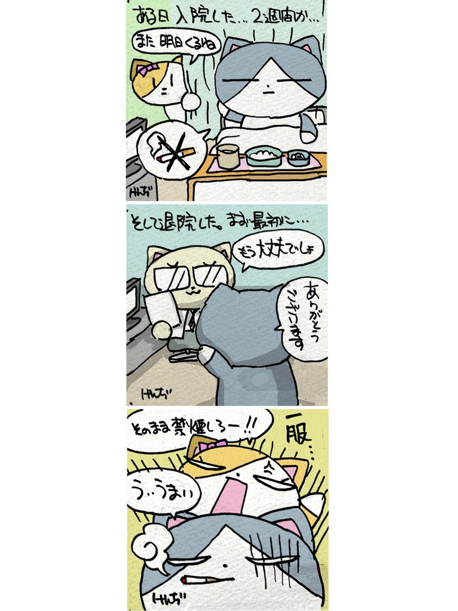 【スタッフ】 笑い話で終わる時代は終わった‼️ 言うなればこれからの人生、この状態をいかに幸せにしていくか がんばれ✊️‼️はちねこくん。 #KKロングセラーズ #禁煙 #禁煙中 #タバコ #ねこ #猫好きさん #はちねこくん #イラスト #生活習慣 #絵描きさんと繋がりたい #イラスト好きさんと繋がりたい