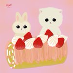 ハートの女王。。。 不思議の国で、ハートの女王体験をするモフ。 ウサギのモッチも、白うさぎ体験をしています。.⁎⁺˳✧༚。 #猫好きさんとつながりたい #ねこ #イラスト好きさんと繋がりたい #イラスト