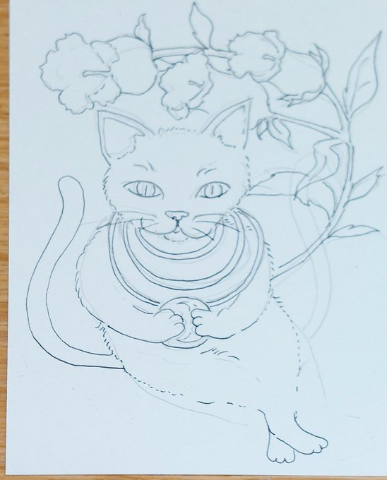 はなまる描いてみたよ!はなまるの大好きな緑の虫さんとクッションについてる白いリボンも一緒に描いてあげた🐱今度原宿の3D・2Dアートカフェさんで描いてもらうんだ♪☕️ #いつもはなまる #猫好きさんと繋がりたい #猫好きさんとつながりたい #猫のいるくらし #猫のいる暮らし #ミヌエット