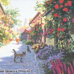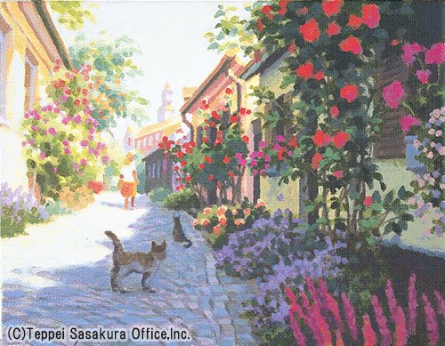 🌟版画(#ジクレー)を展示中 笹倉鉄平 Teppei Sasakura 『薔薇の咲く小路~The Lane with Roses~』 2021年 #スウェーデン🇸🇪 「グリーティングカード」 「笹倉鉄平 版画全集 2013~2023」 笹倉鉄平ちいさな絵画館 kaigakan-teppei.net #笹倉鉄平 #画家 #アート #絵 #猫好きな人と繋がりたい