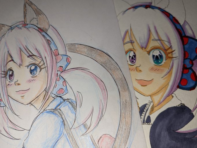 星髪の猫娘 Star Hair Cat girl #drawing #ilustration #originalcharacter #catgirl #nekomimi #copic #art #ArtistOnTwitter #イラスト #オリキャラ #けものみみ #ねこみみ #猫娘 #イラスト好きな人と繋がりたい #絵描きさんと繫がりたい #ケモミミ #アナログイラスト