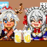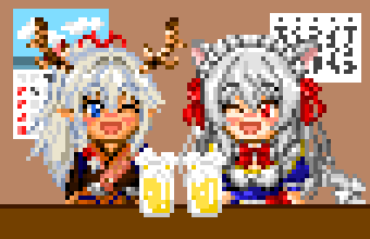 withnews.jp/extra/virtual_… #JAタウンバーチャル物産展 さんで15:00からコラボ予定のお二方のドット絵ですー #猫恋リズベット #猫恋アート #青龍アオイ #画龍展青 #ドット絵 #酒呑みめいどらごん