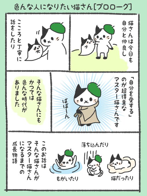 色んなひとになりたい猫さん[プロローグ] このお話は豆腐メンタル&繊細系猫さんが「自分を愛する」のが超得意なマスター猫さんになるまでの成長物語です。 #漫画がよめるハッシュタグ #マンガが読めるハッシュタグ #4コマ漫画 #猫漫画 #色ねこ4コマ
